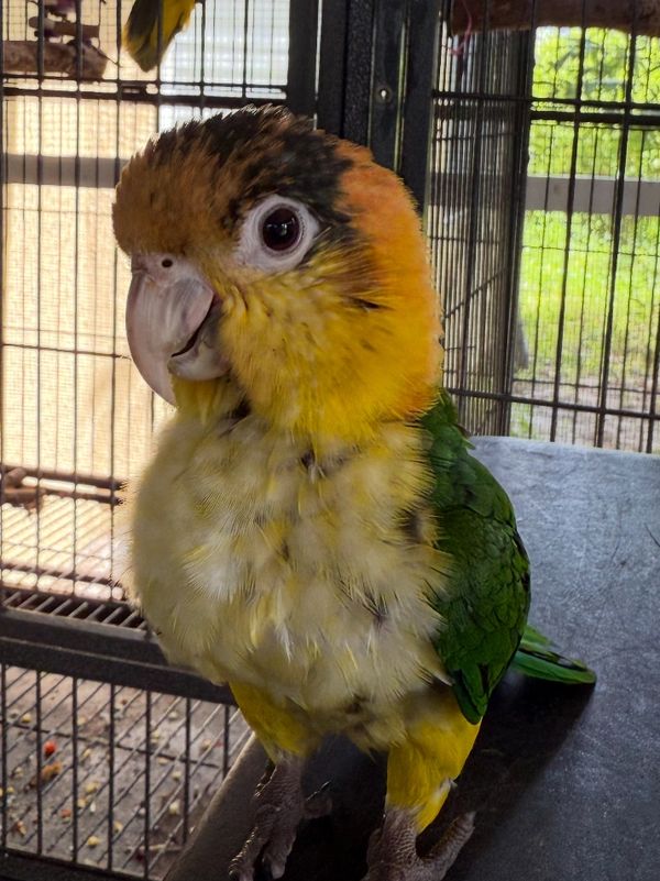 Sweet and playful caique looking for his forever home. Disease free and DNA sexed male.